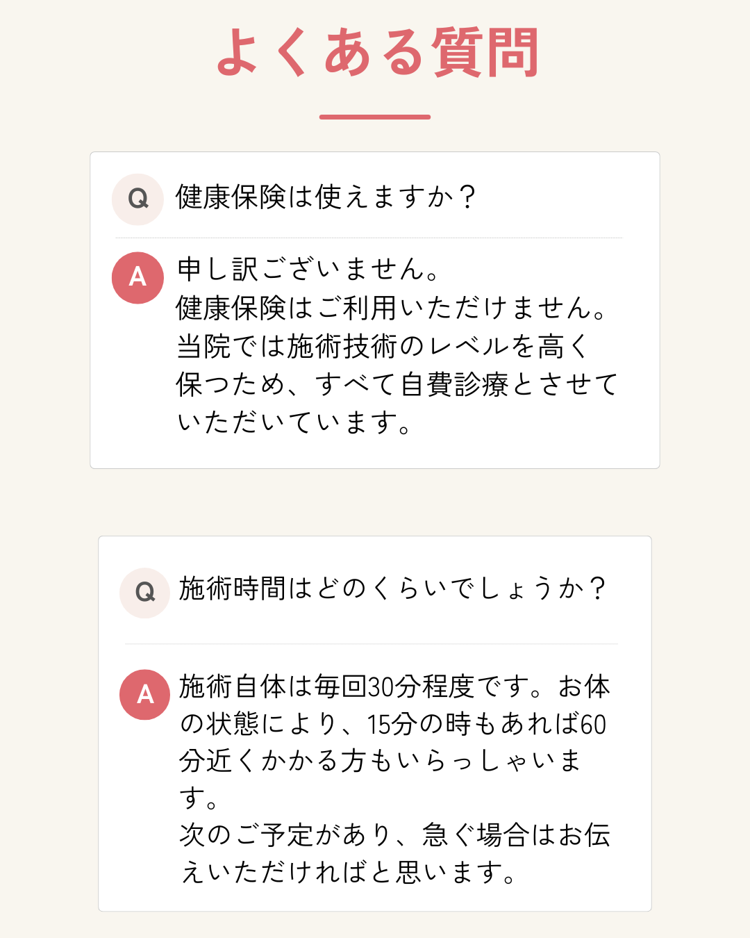 カウンセリング代、施術代は一切いただきません。